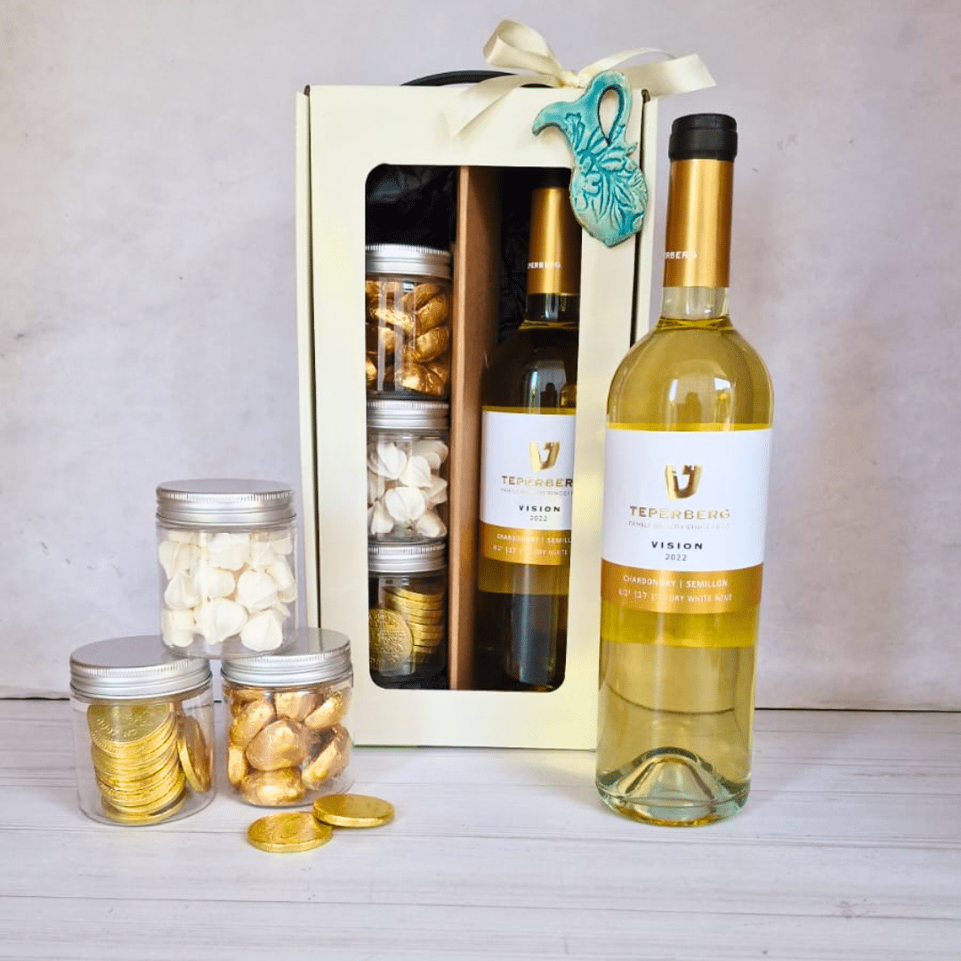 בקבוק יין לבן או אדום ( לפי הקיים במלאי)