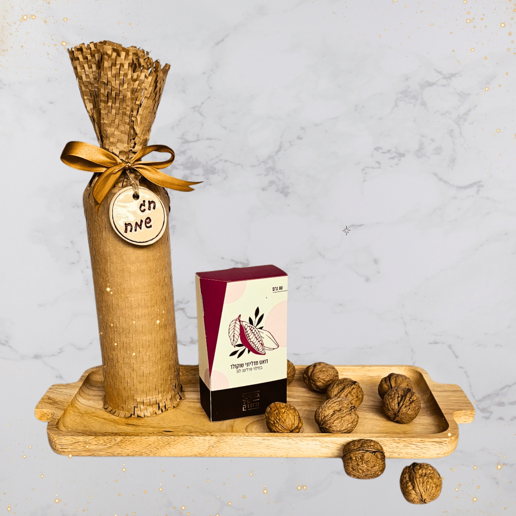 דלג לתוכןעמוד הבית / חנות / כל המוצרים / יין ושוקולד על מגש עץ