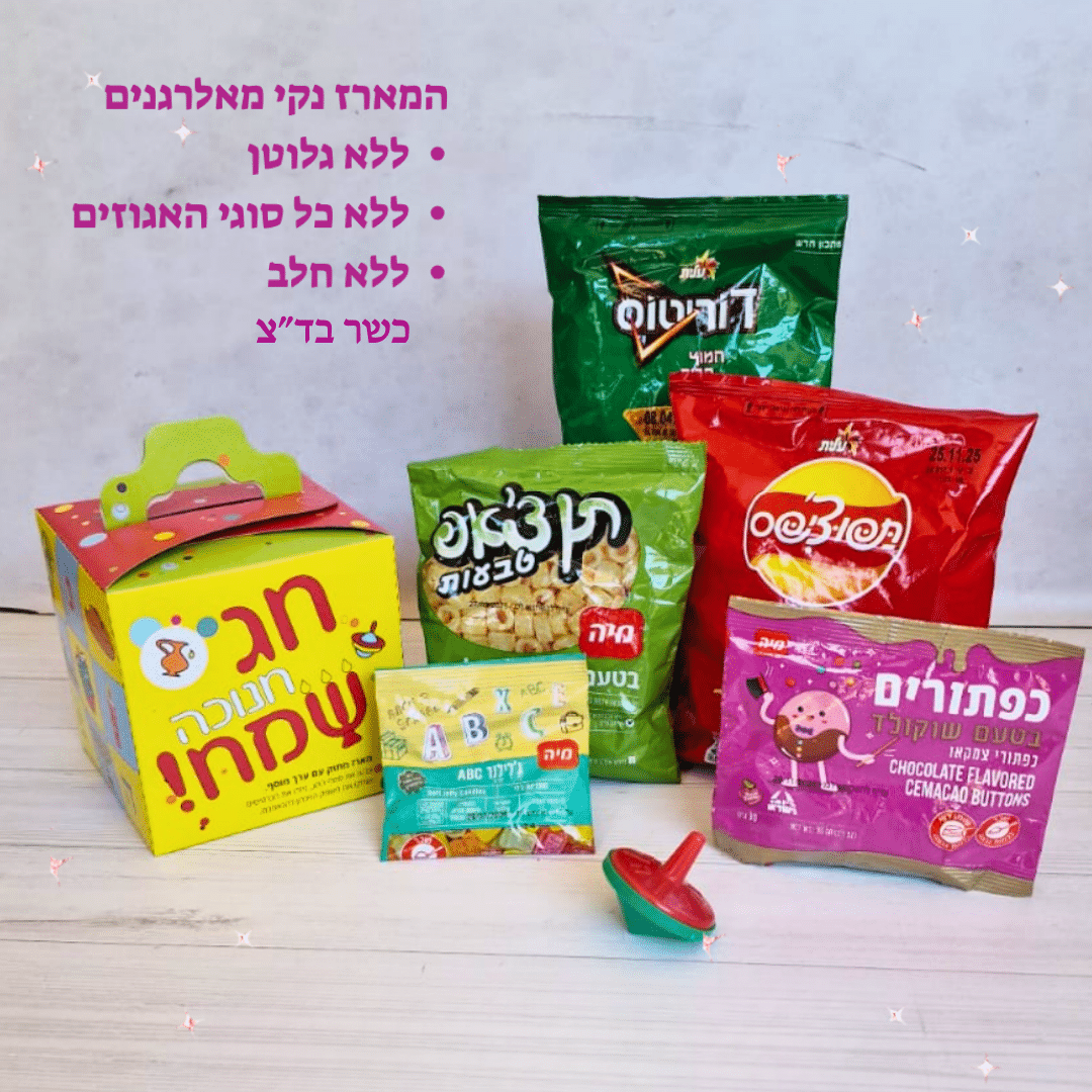 דלג לתוכןעמוד הבית / חנות / כל המוצרים / מארז חנוכה לילדים נקי מאלרגנים: ללא גלוטן, אגוזים וחלב (כשר בד"ץ)