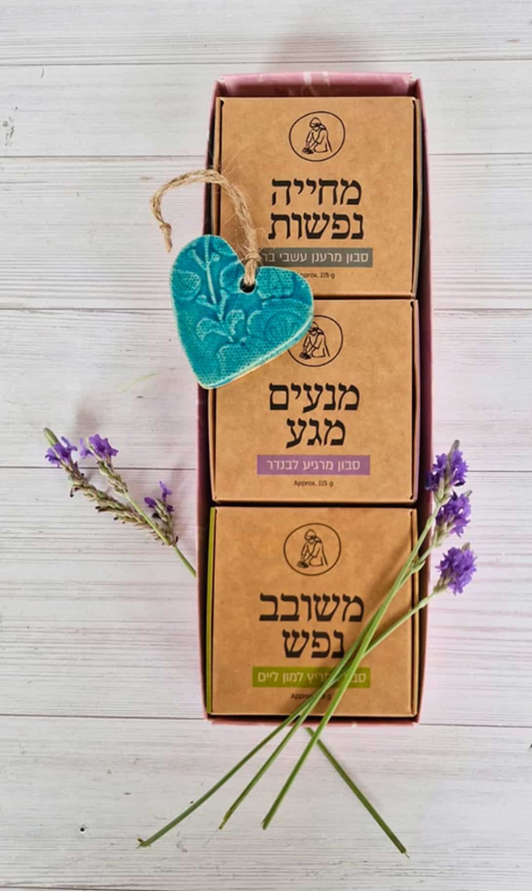 המארז מכיל: שלושה סבונים טבעיים של מיכל